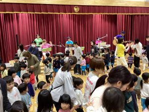 ポンポロプーさんは、白山市にて地域の子ども達に『音楽の楽しさ』を生で伝えるために結成されたユニットです。今日は、元気いっぱいの歌声と可愛らしい手拍子が響きわたり笑顔があふれていました。