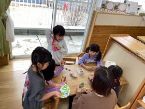 「なにして、あそぶ?」「UNO、しよう!」ルールを確認しながら、楽しんでいました。