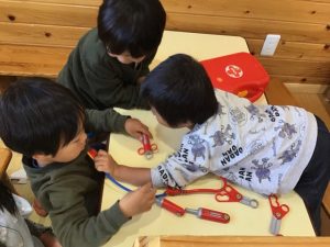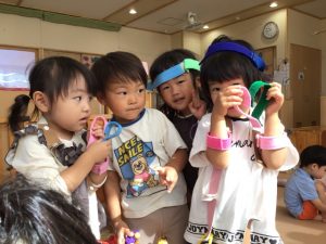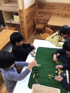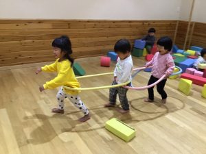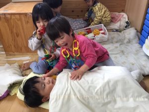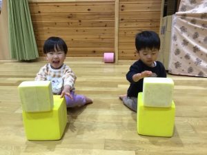二階のお部屋に遊びに行って、大きな子達と一緒に遊びました!