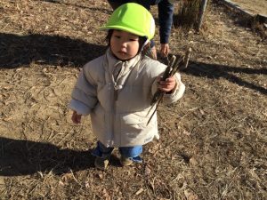 次は、園庭で木の枝集め。