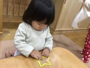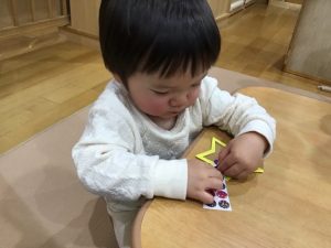 お友だちはどこに貼るのかを観察しながら、一緒に楽しんでいます。
