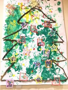 木の枝を使ってクリスマスツリー作りをしました。