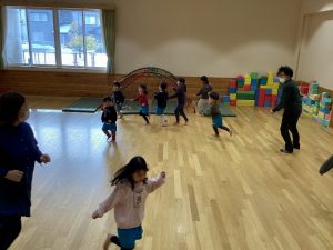 「おとうさんがオニになって!」子どもたちからのご指名でおにごっこが始まりました。
