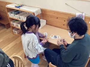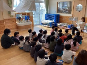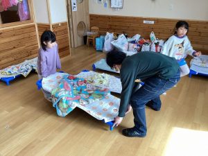 集いの後、お昼寝の準備も一緒にしました。