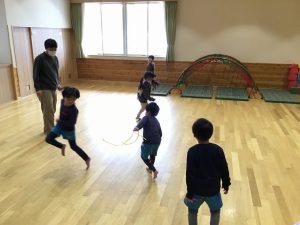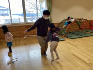 お父さんと一緒になわとびを楽しみました。たくさん跳ぶことができて嬉しそうでした。