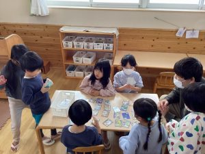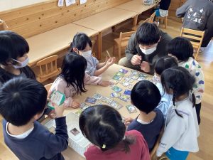 「これしてあそぼう!」みんなで、カードを見つめて…。真剣勝負‼