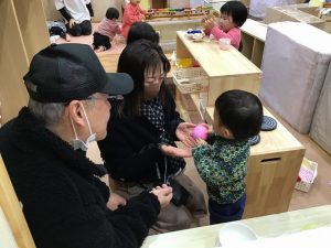 一緒に遊んだり、日頃の園での様子を見ていただいたりする中で、温かい時間となりました。
