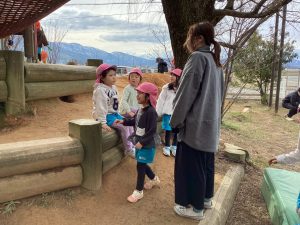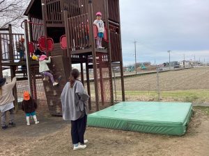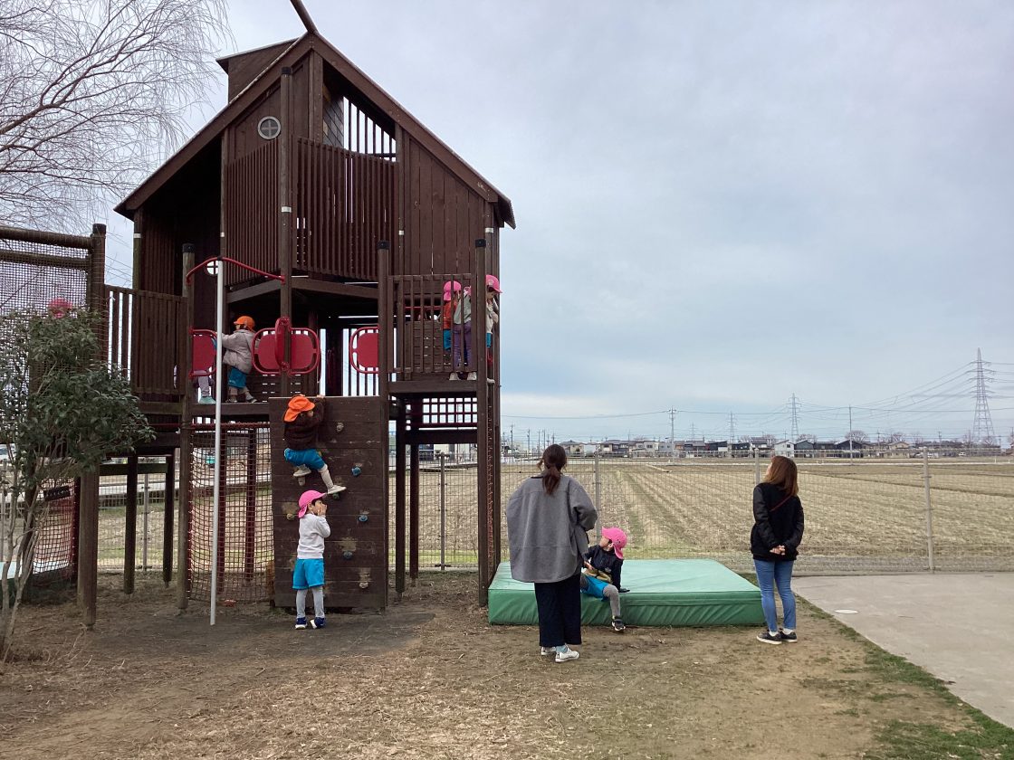 「ここで遊ぶ?」「どうする?」みんなで話し合い中です。