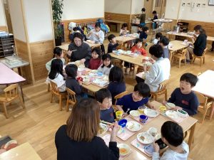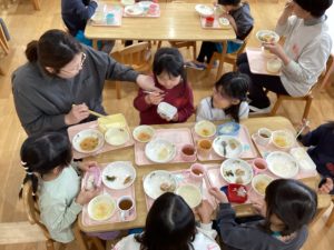 「おいしい‼」お母さんの言葉を聞いて食べる姿がみられました。